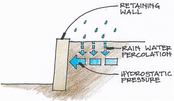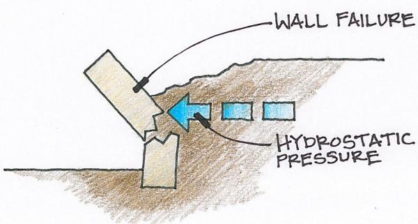 Without drainage hydrostatic pressure will push wall over