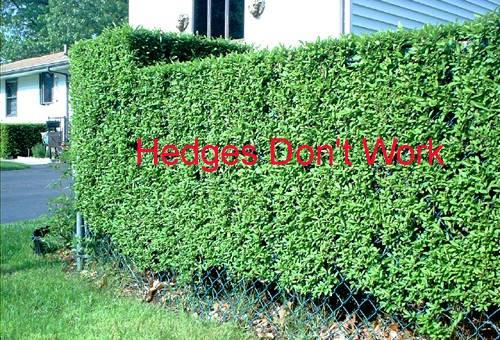 This hedge lets noise over, under and through it. Dense plantings must be over 60 foot wide before they provide any significant noise reduction.
