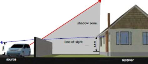 When constructing an acoustic wall to eliminate highway noise. The height, width and location of the noise barrier wall, dictates the size and shape of your noise shadow.