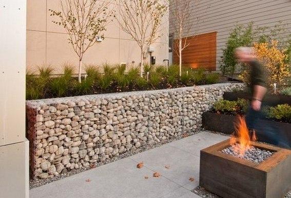 Gabion Retaining Wall Design Ideas. Built using rounded river boulders. Weed mat between gabions and soil. Easy to assemble and low cost retaining walls.