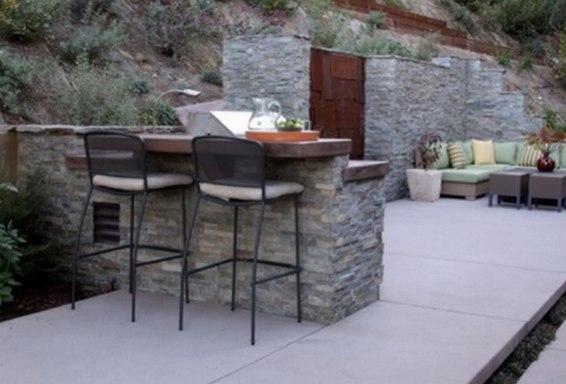 Gabion Retaining Wall Design Ideas 1/ Built using stone venner on concrete block wall. 2/ Corten steel waterfall. 3/ Stone walled patio cut into hillside.