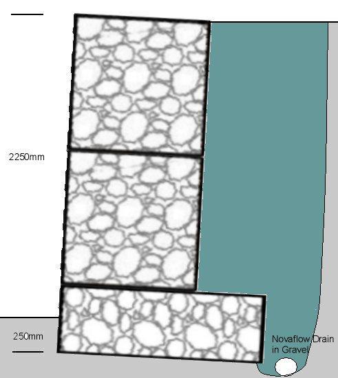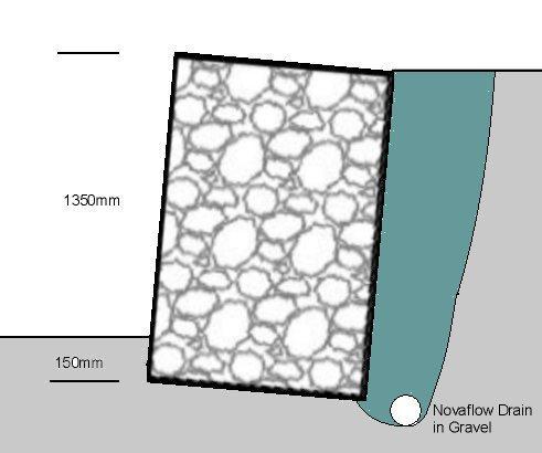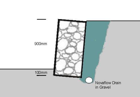 Stability is improved by backfilling behind the wall with a free draining granular material and building the wall with a slope of 5-10 degress